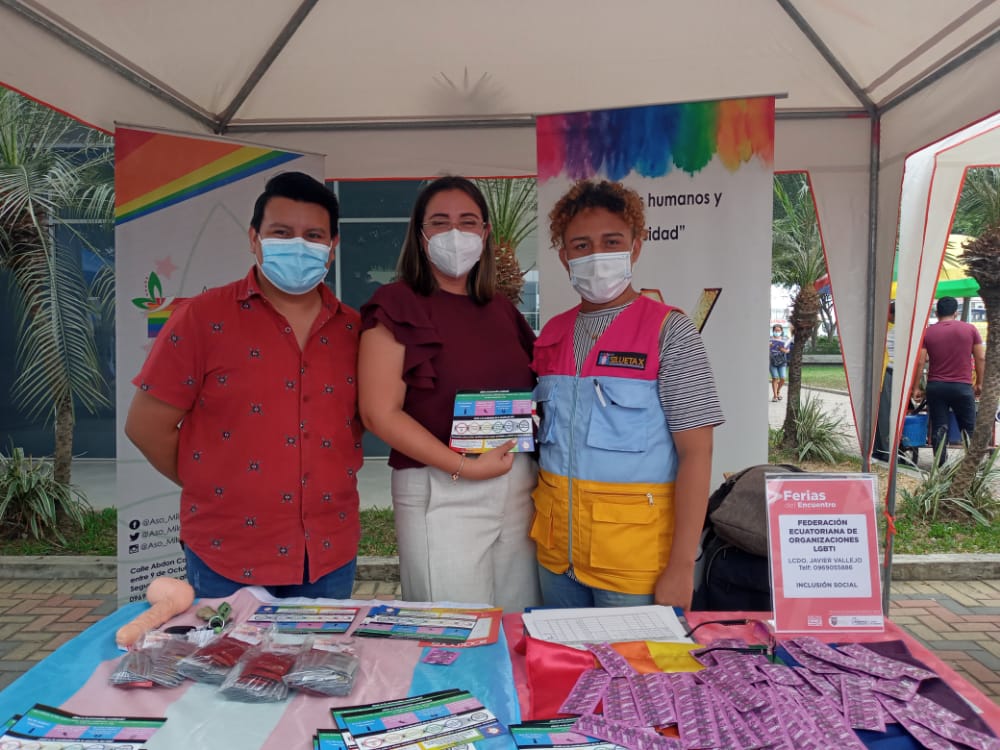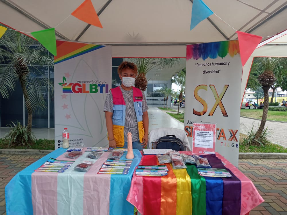La Asociación Silueta X, Federación Ecuatoriana de Organizaciones LGBTIQ+y Miembros de La Asociación Milagro GLBTI estuvimos presentes en la feria joven del MIES haciendo el trabajo que hemos venido realizando siempre como es la entrega de kits de prevención para cualquier ITS que se presente silueta X te cuida, realizamos también dinámica con las persona para ver si saben el verdadero uso del preservativo.